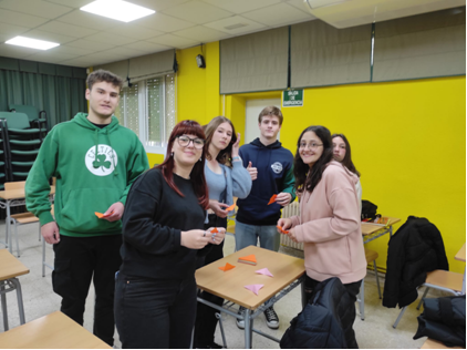 After the school wellcome and show the school and ways of work, students participated in an icebreaking activity. Math teachers had prepared an original math Origami challenge that students, organized in country mixed groups had to solve.